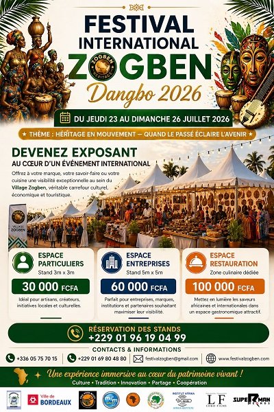 - Bénin : À Dangbo, le Festival International Zogben 2026 lance une course aux stands au cœur d’une vitrine culturelle stratégique