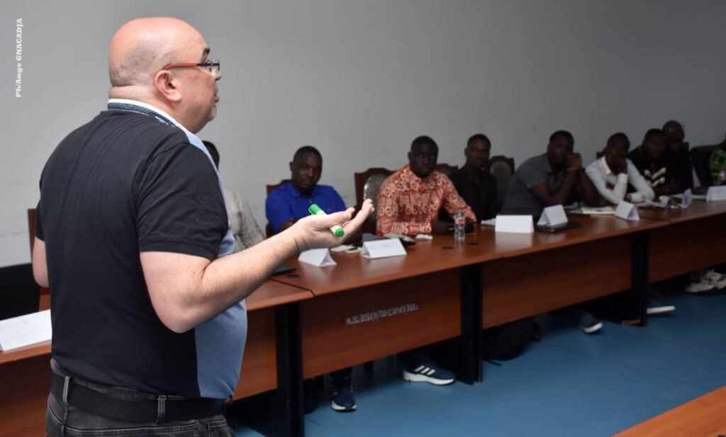 «Mr Frank SIMON, nous ne doutons aucunement de votre capacité à transmettre le maximum de votre savoir à nos journalistes. C’est pourquoi je vous prie de tout leur donner. A vous les stagiaires, je vous demande de poser toutes vos préoccupations sur connaissance des choses à faire et des choses à ne pas faire. Il est là pour vous les dire», a insisté le DC. Quant à Frank SIMON, il a remercié le ministère des sports pour avoir pris cette initiative. «Ma volonté a toujours été de partager et de transmettre mon expérience avec bienveillance et bonheur. Pour la plupart, vous serez au Maroc. J’espère qu’on se verra là-bas. Le journaliste est un professionnel. A ce titre, il doit avoir un comportement professionnel dans le cadre de ses fonctions», a déclaré Frank SIMON tout en promettant 4 jours de partage de bonheur et de savoir-faire aux stagiaires. Représentant les reporters sportifs, Rodrigue AMENGAN de Bénin Tv, a salué l’opportunité offerte par le ministère des sports avant de rassurer en leur nom, qu’une attention particulière sera accordée à tout ce qui sera fait durant la session de formation.Présentant le projet, le directeur du sport et de la formation sportive, Okry NONVIGNON, a précisé qu’il a été initié en conformité avec la vision du président de la république, Patrice Talon, qui est de faire à terme du Bénin, une nation sportive. «Cette formation entre dans le cadre des préparatifs de notre participation à la prochaine phase finale de la CAN 2025. Elle vise à doter les journalistes des rudiments nécessaires afin qu’ils assurent bien leur mission en tant que professionnel des médias», a souligné le Dsfs.A préciser que lancée le jeudi 4 décembre, cette formation prend fin le dimanche 7 décembre prochain.